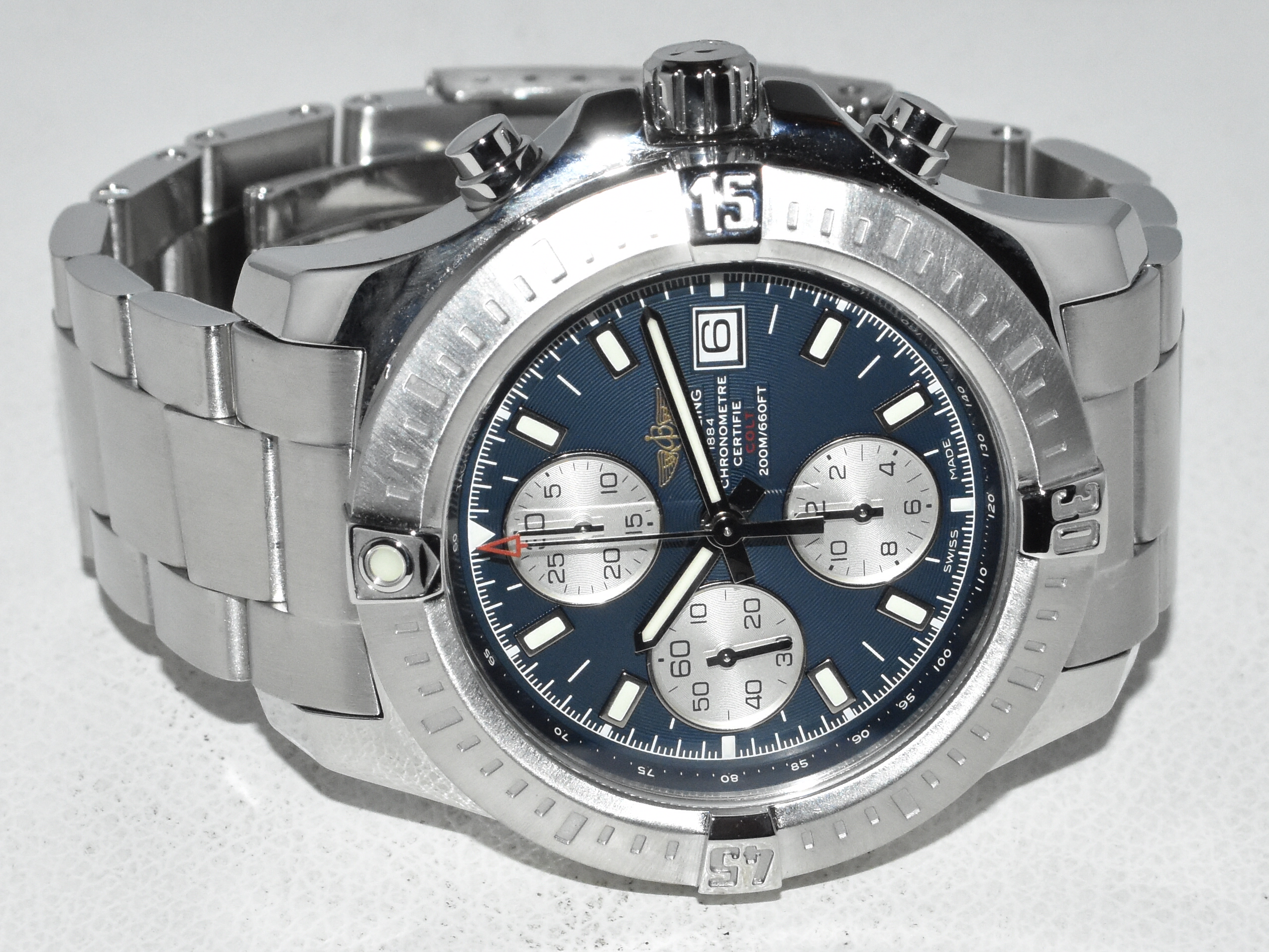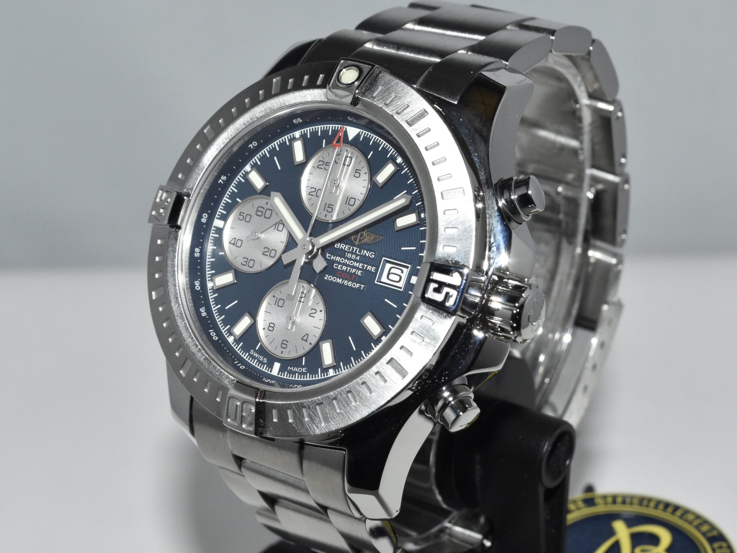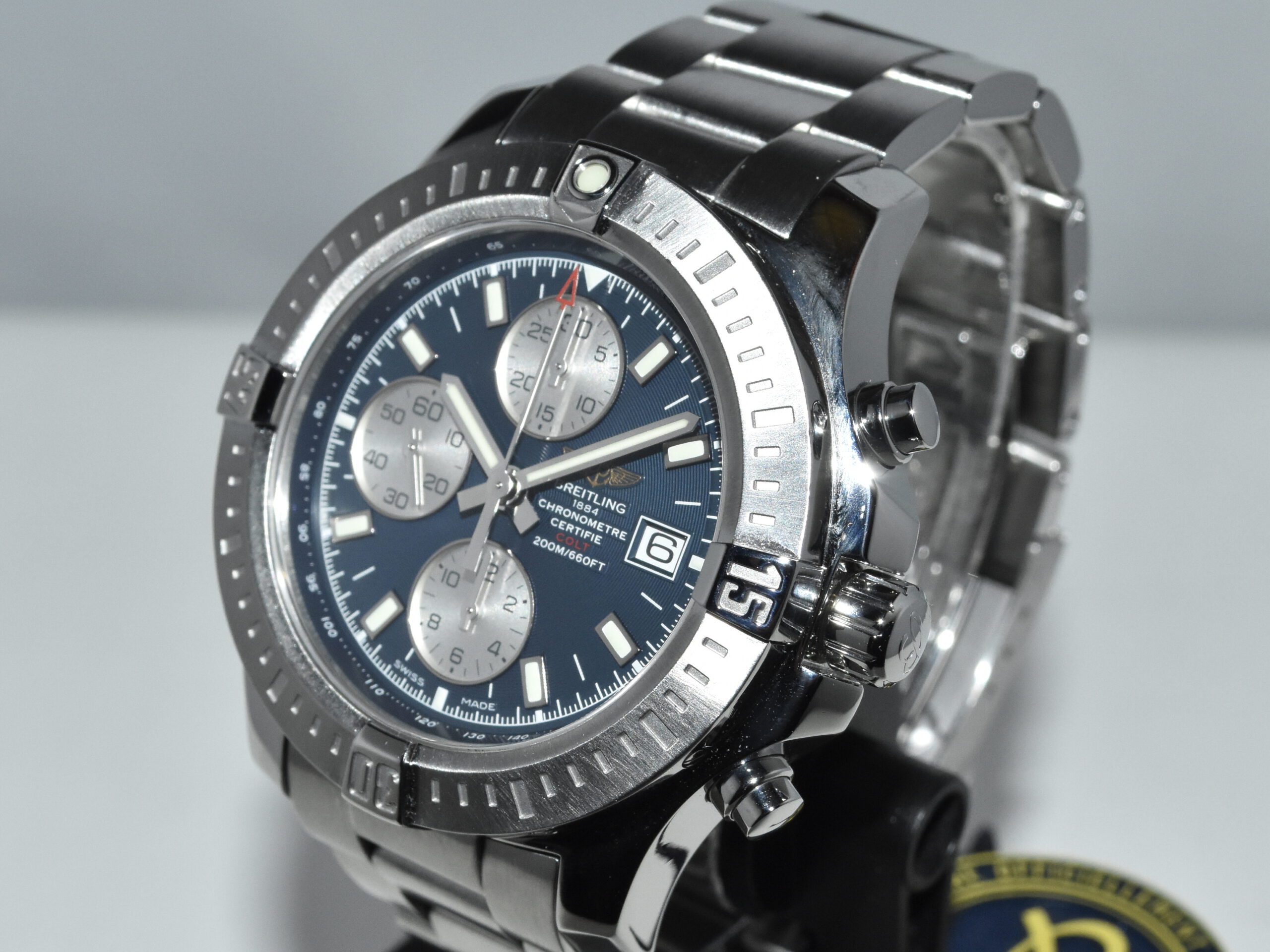 Breitling Colt Chronograph 44 A1338811, IN ABSOLUTE AS NEW CONDITION !! Watch received service in our Breitling authorized workshop, and comes with brand new original Breitling box. Iconic Breitling mens sportsmodel, with beautiful midnight blue dial, perfect watch for everyday use !!