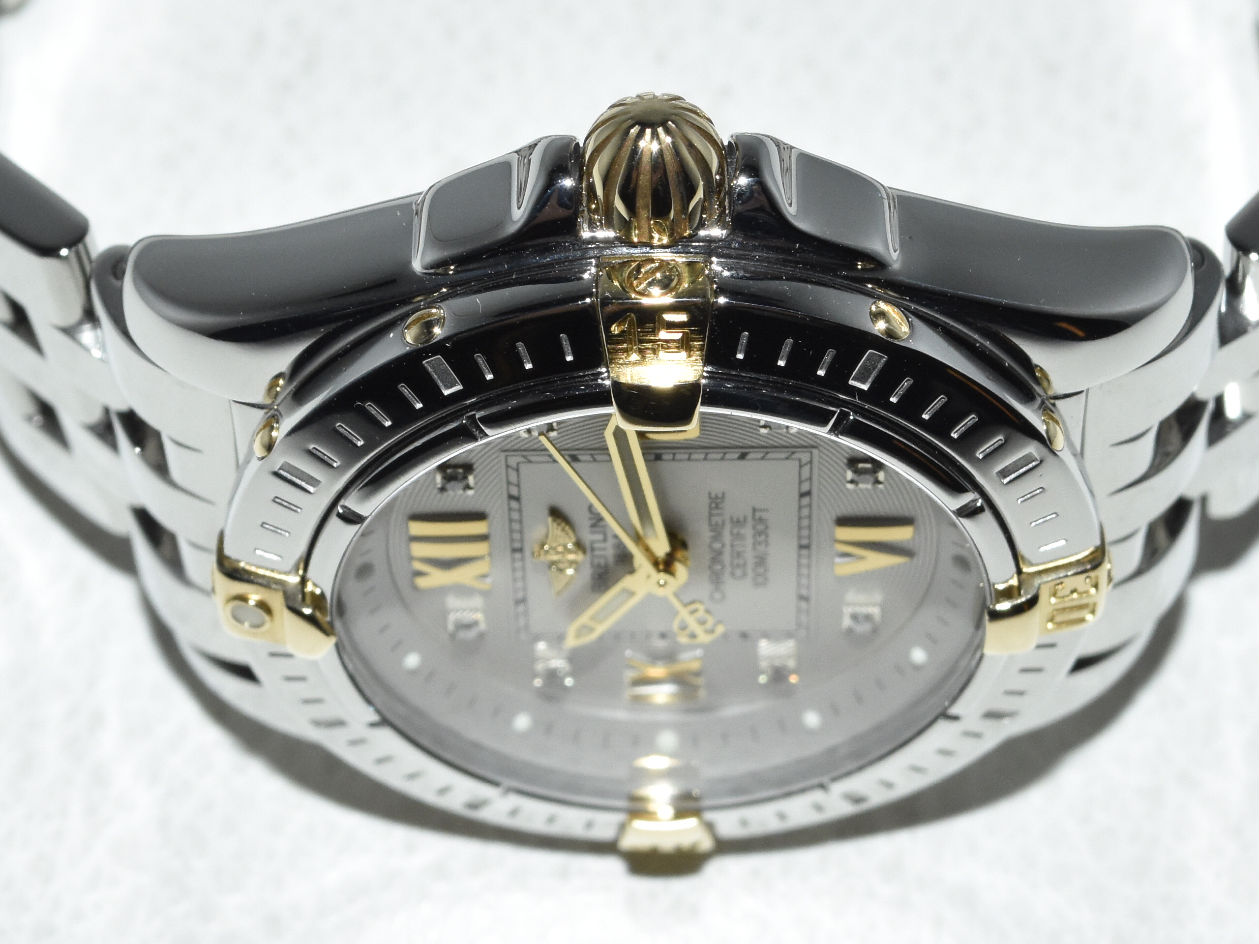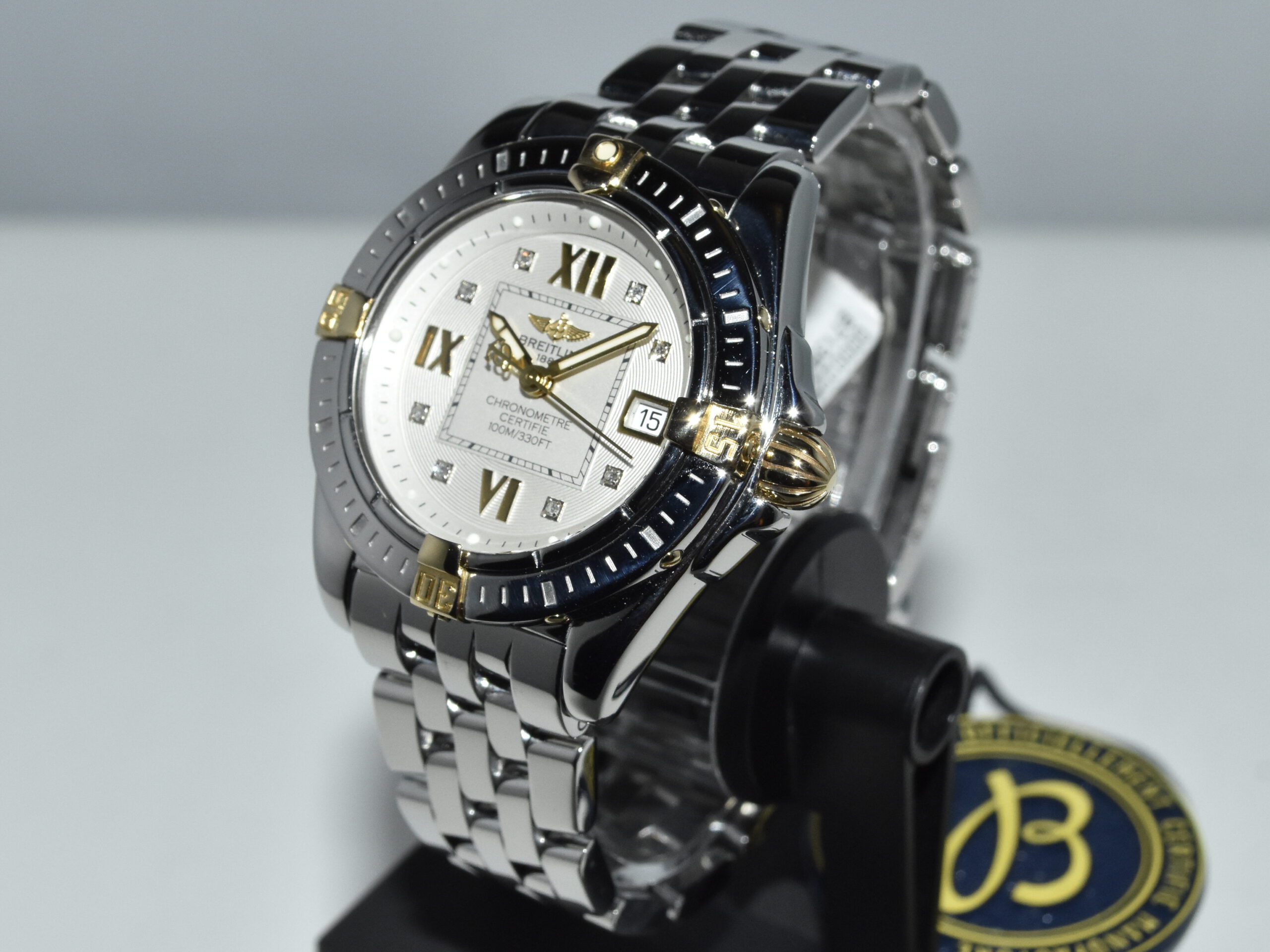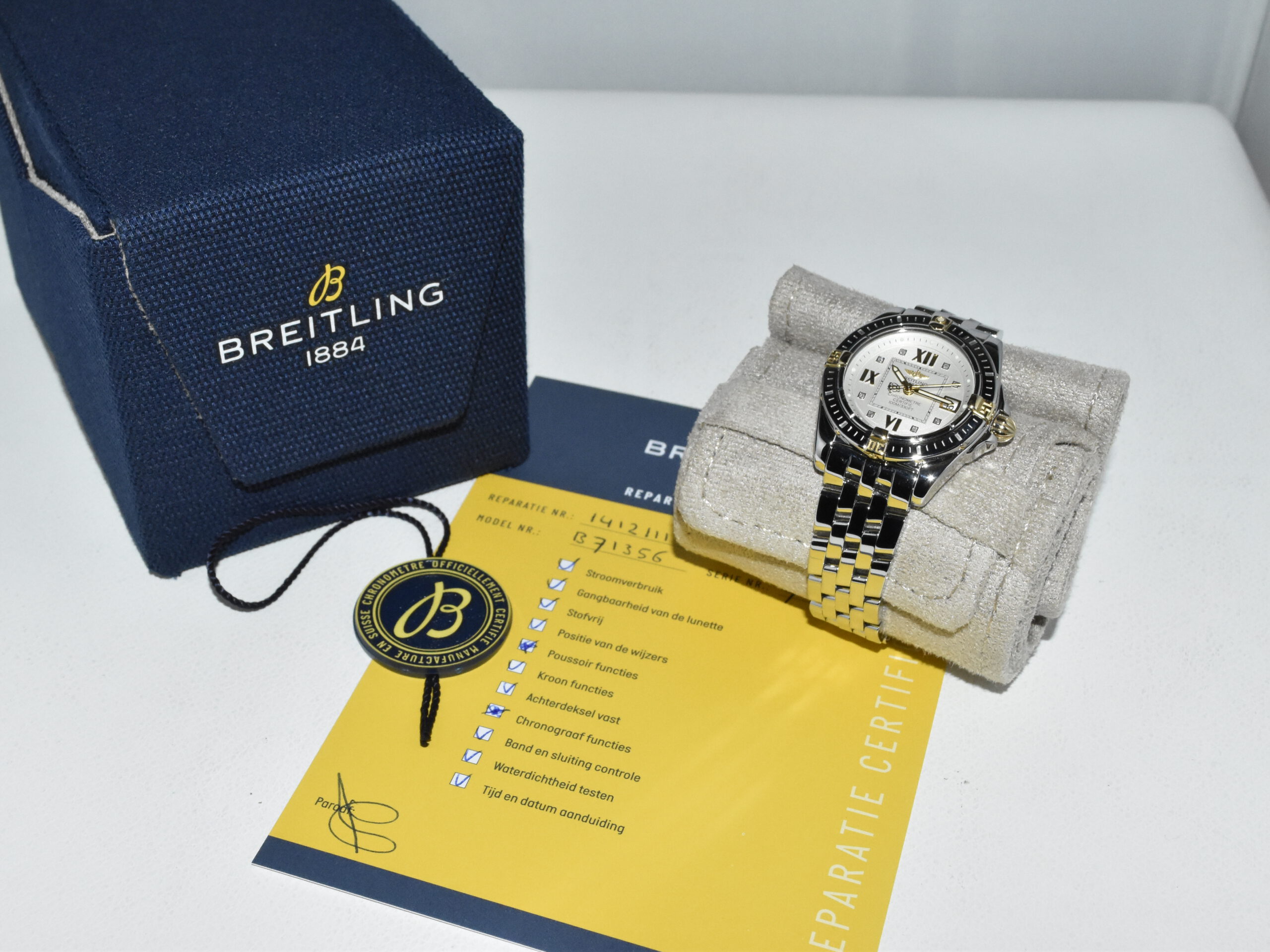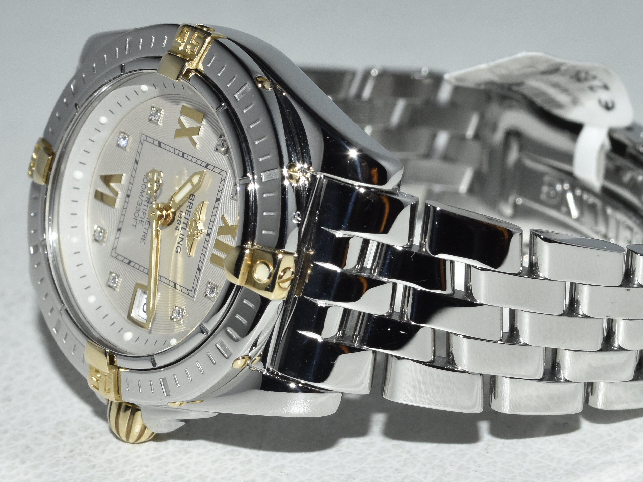Breitling Galactic / Cockpit 32 B71356, yellowgold/steel, IN ABSOLUTE AS NEW CONDITION !! Watch received service in our Breitling authorized workshop, and comes with brand new original Breitling box . Iconic Breitling ladies sportswatch with real diamonds and the very desirable Breitling Pilot bracelet, perfect for everyday use !!
