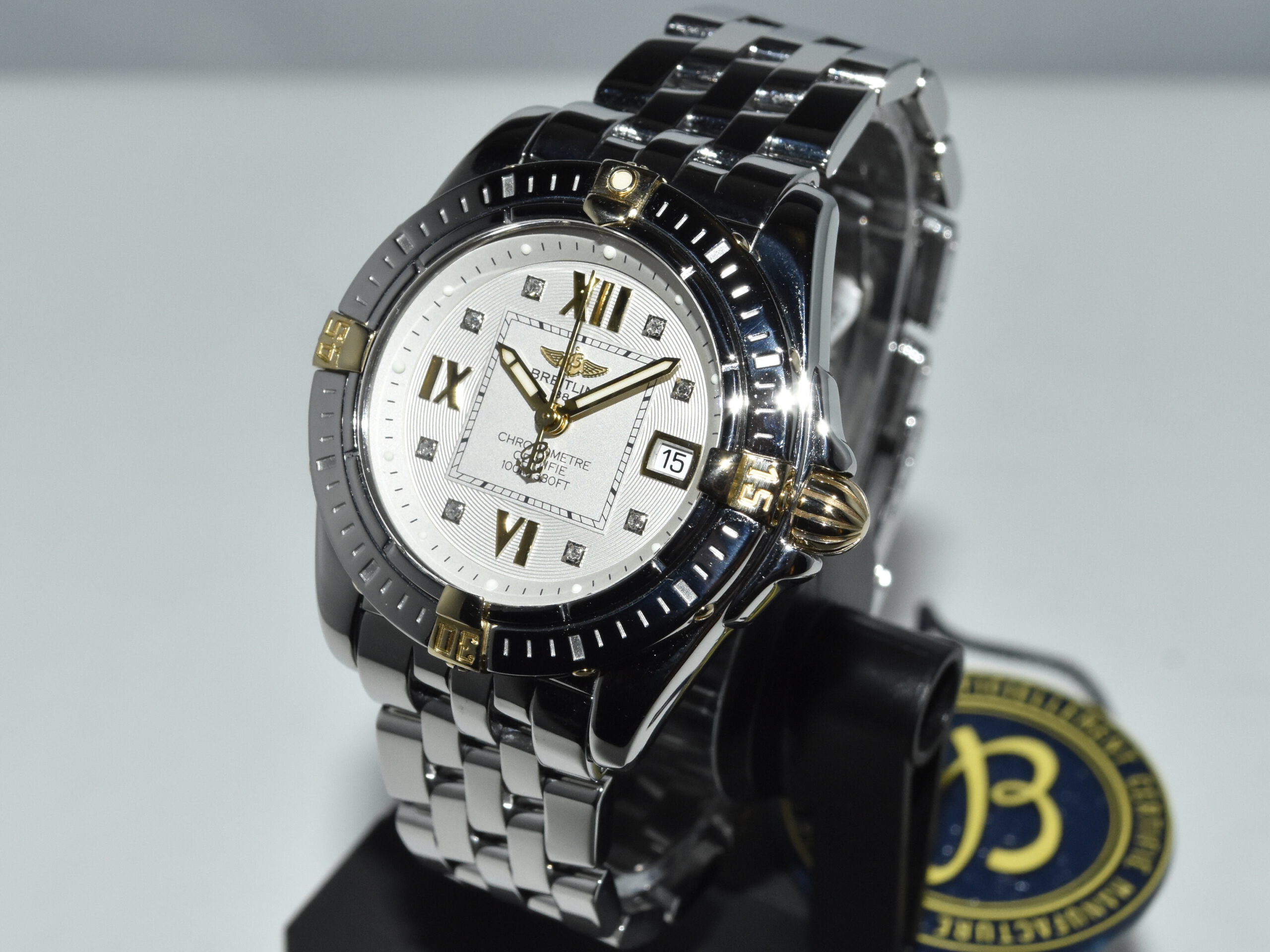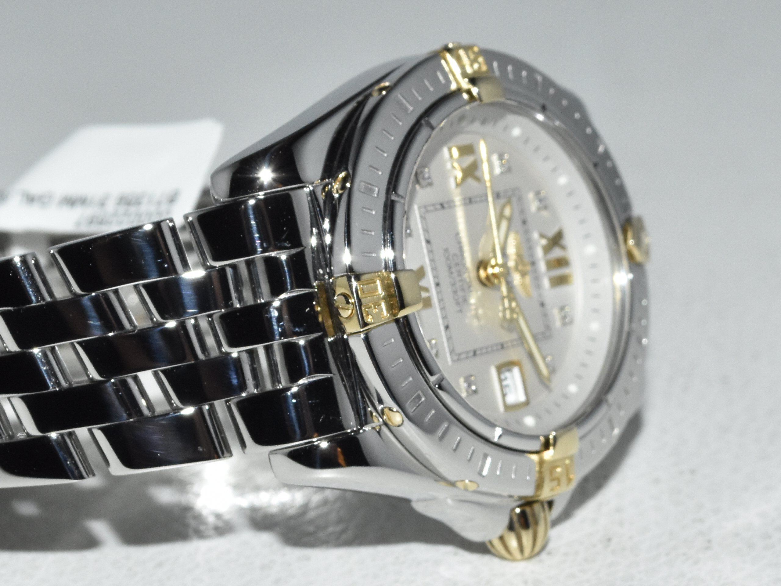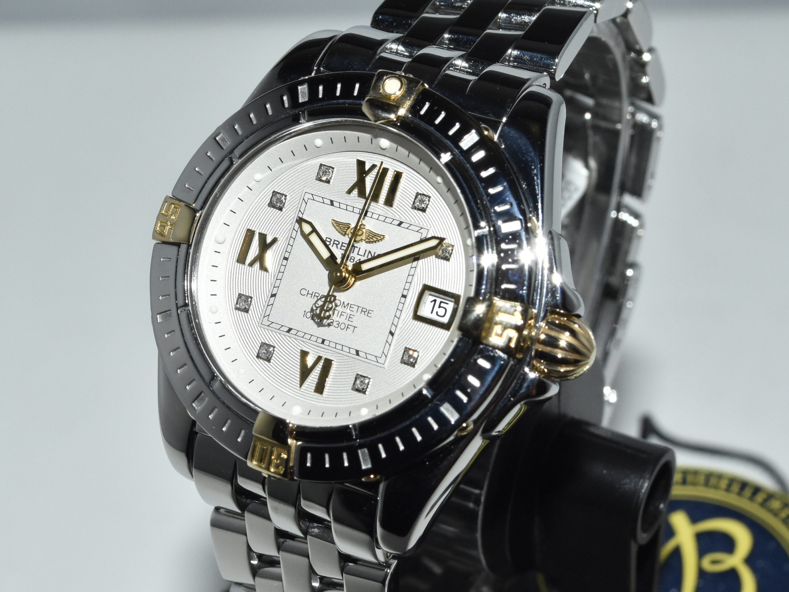 Breitling Galactic / Cockpit 32 B71356, yellowgold/steel, IN ABSOLUTE AS NEW CONDITION !! Watch received service in our Breitling authorized workshop, and comes with brand new original Breitling box . Iconic Breitling ladies sportswatch with real diamonds and the very desirable Breitling Pilot bracelet, perfect for everyday use !!