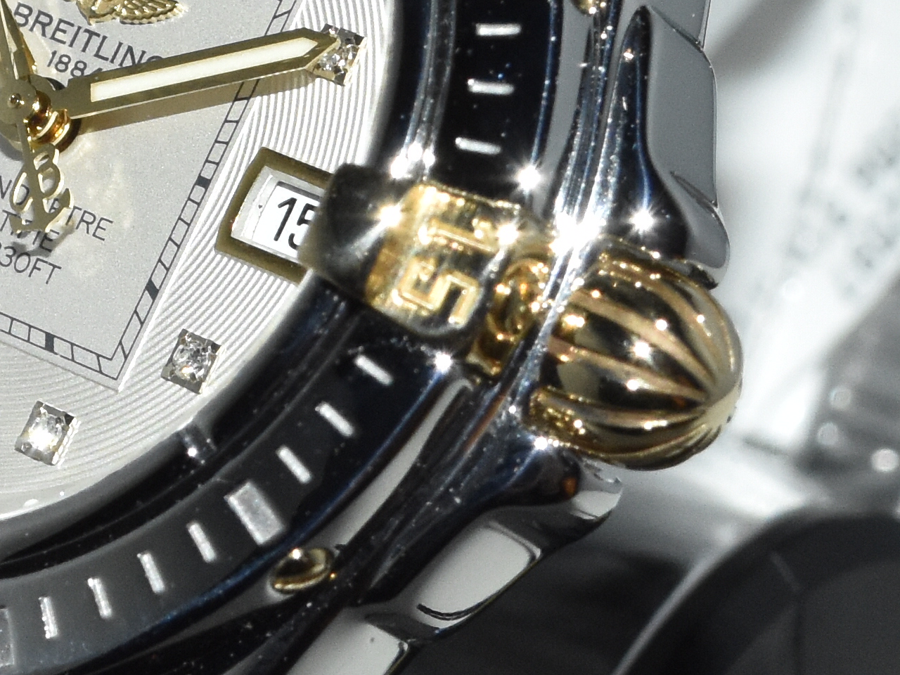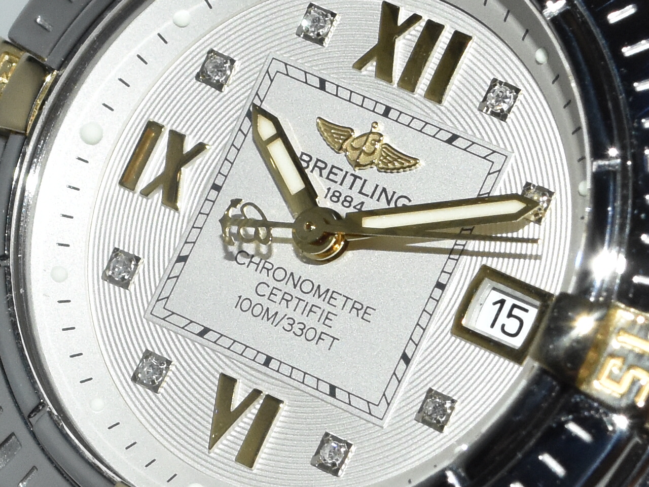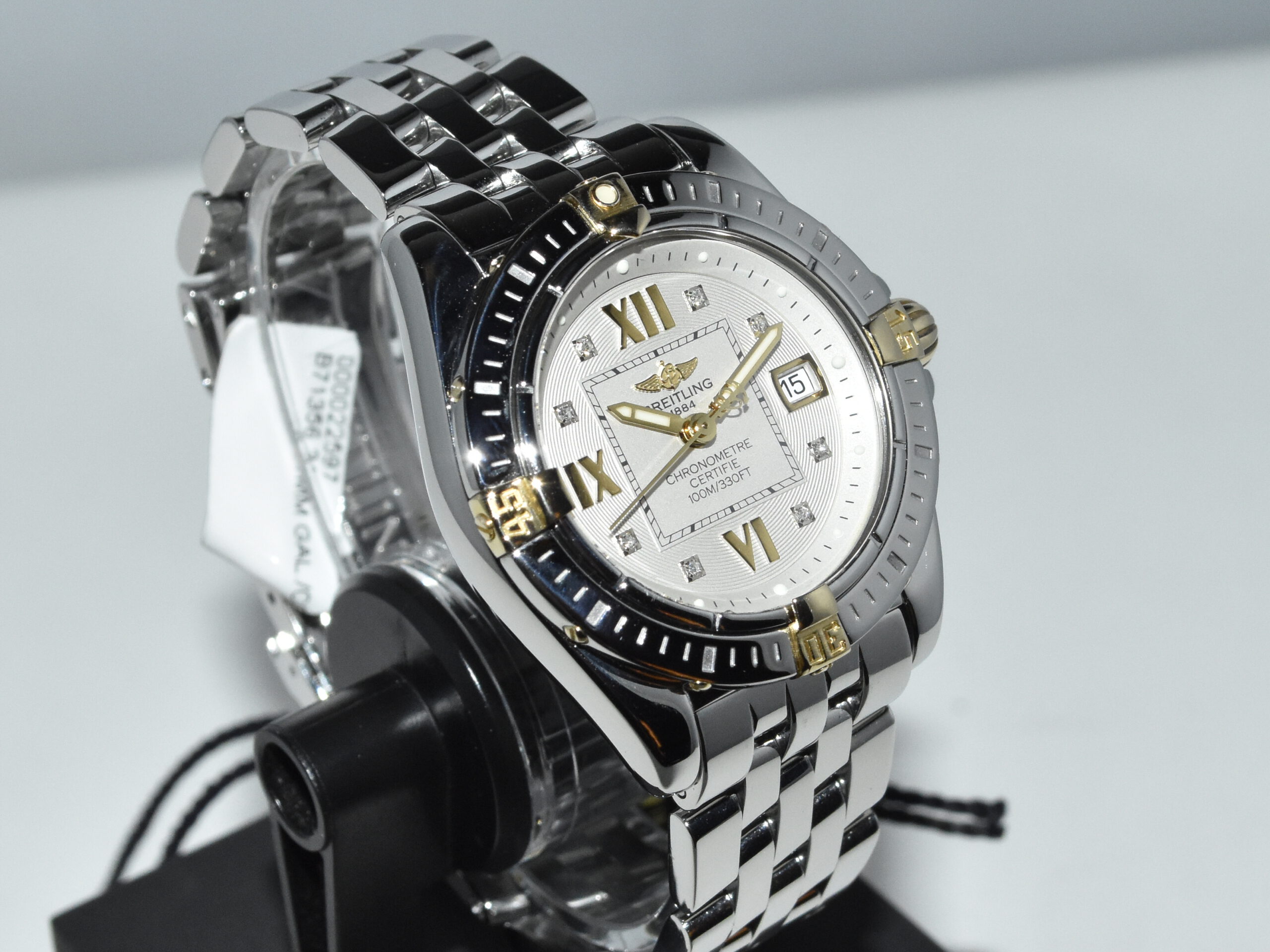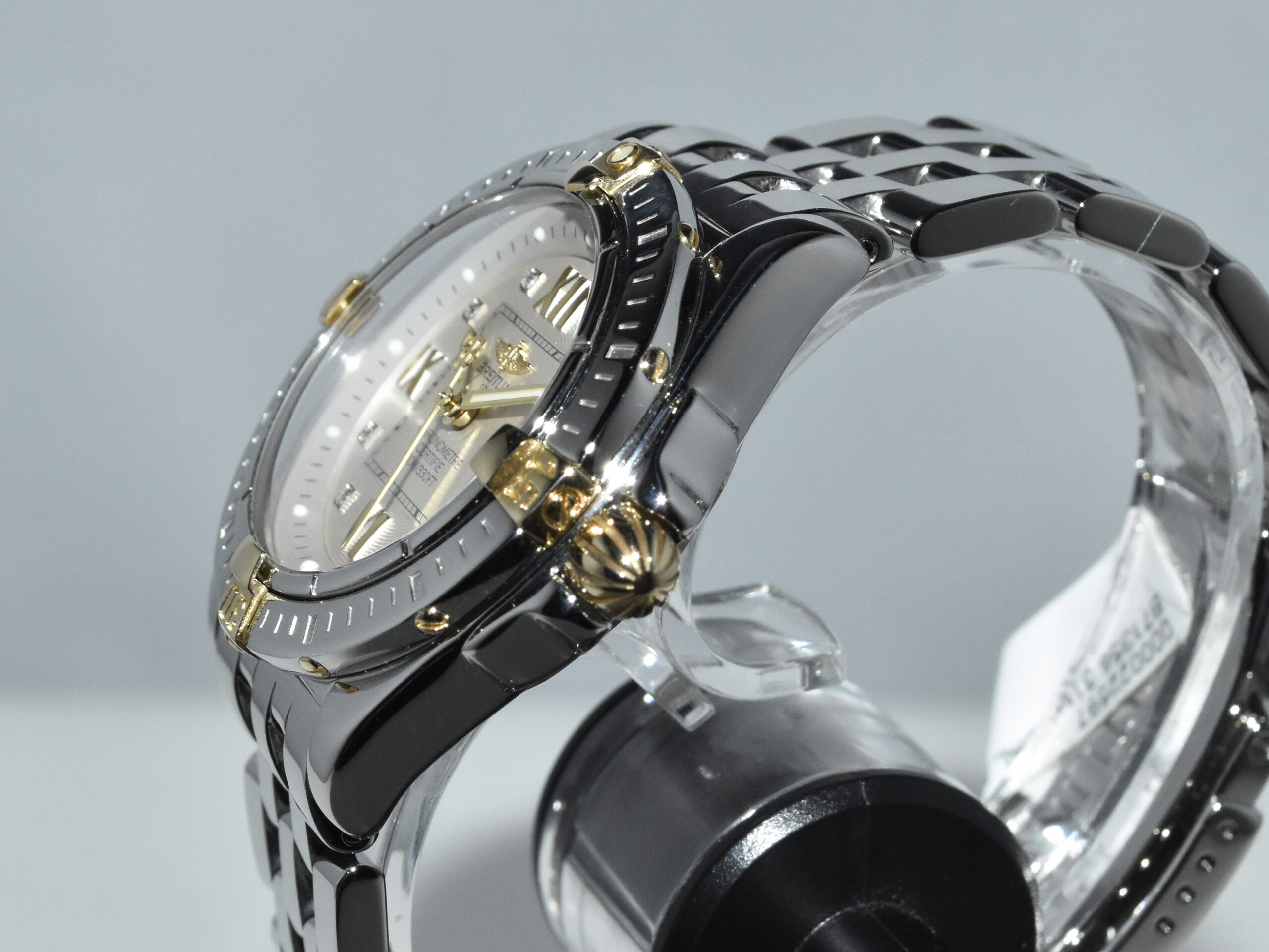 Breitling Galactic / Cockpit 32 B71356, yellowgold/steel, IN ABSOLUTE AS NEW CONDITION !! Watch received service in our Breitling authorized workshop, and comes with brand new original Breitling box . Iconic Breitling ladies sportswatch with real diamonds and the very desirable Breitling Pilot bracelet, perfect for everyday use !!